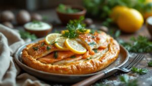 Le koulibiac de saumon possède ce charme unique d’un plat complet qui transporte les papilles loin de la routine, grâce à des saveurs franches et généreuses. Entre sa croûte dorée
