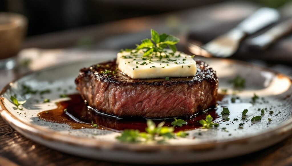 Travailler la viande avec soin reste la première étape fondamentale. Le filet mignon doit être doré à la perfection avant de mijoter doucement dans sa sauce onctueuse au fromage bleu.